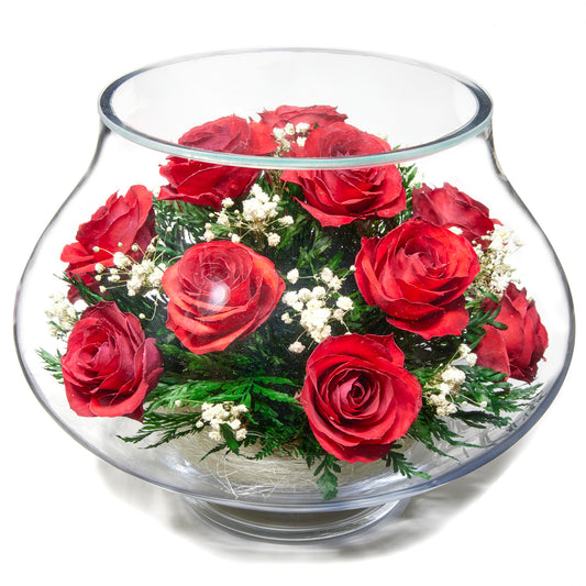The stylish crystal clear vases are sealed and keep the flowers fresh.